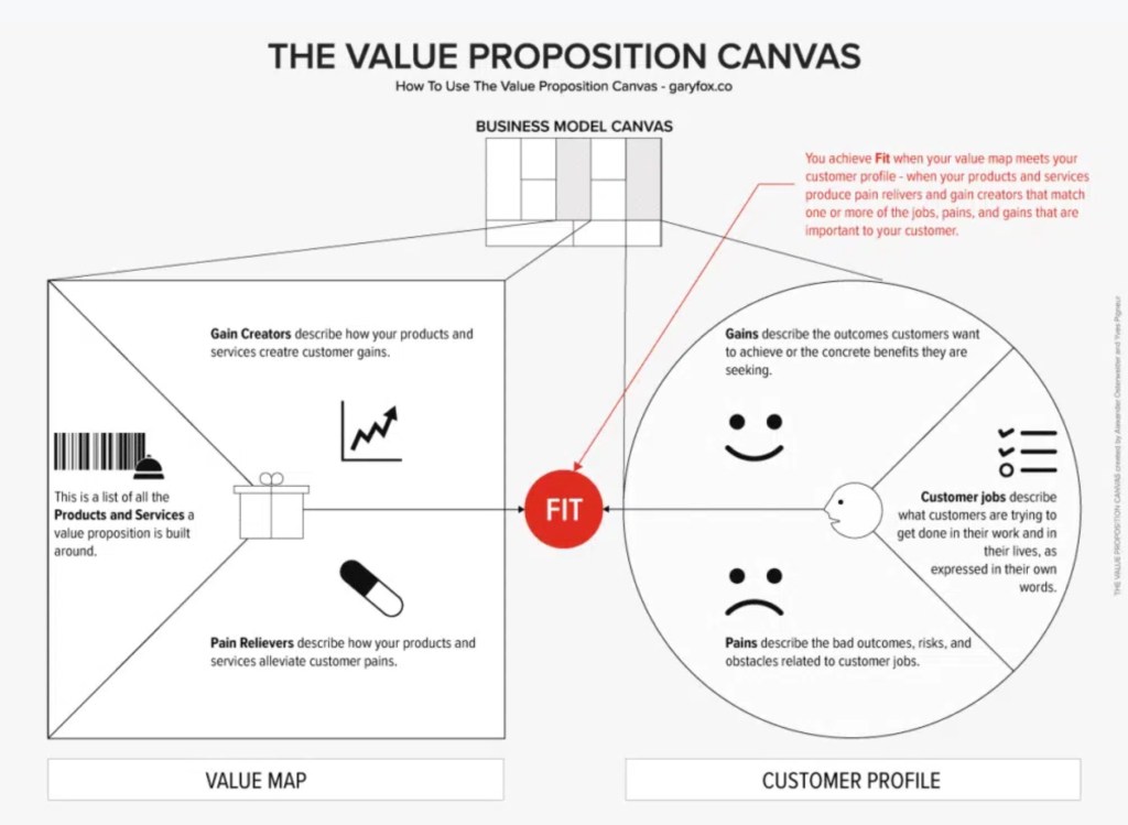 The Value Proposition Canvas is a framework that helps businesses design products and services that meet customer needs: